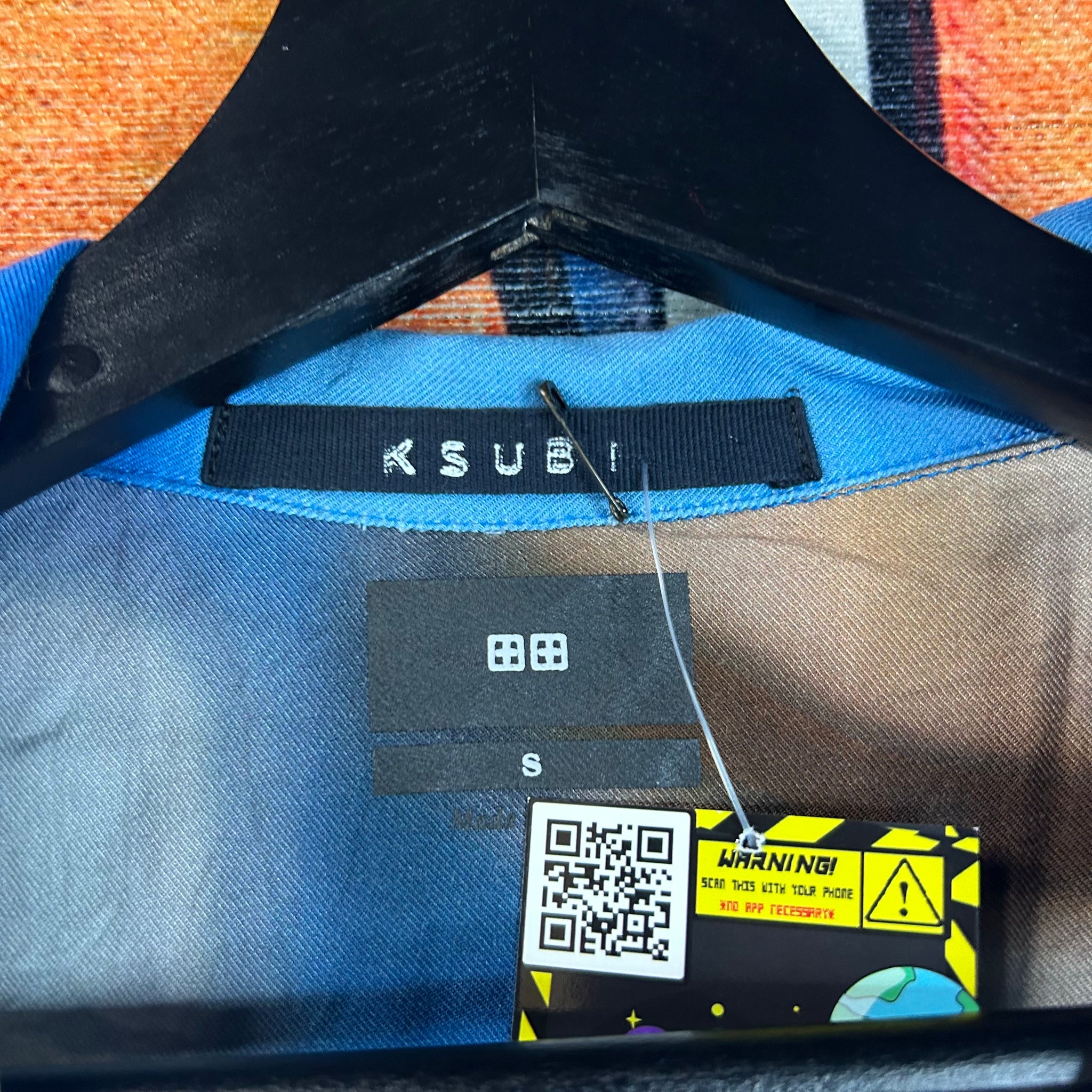 Ksubi Pamela Anderson Button-Up Shirt Size Small. Vintage-inspired streetwear piece featuring Ksubi’s edgy design aesthetic and a bold Pamela Anderson graphic. Relaxed fit with button-front closure, perfect for layering or statement styling.