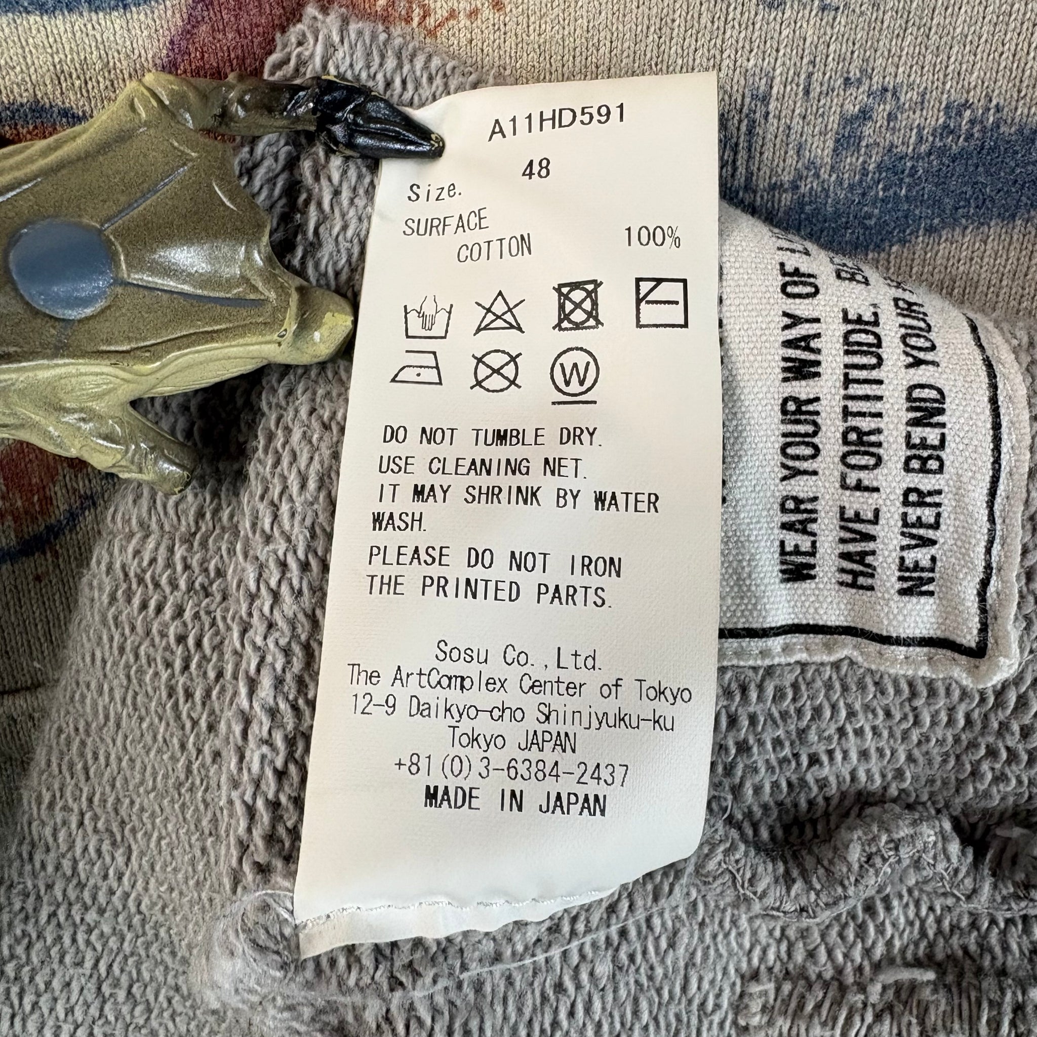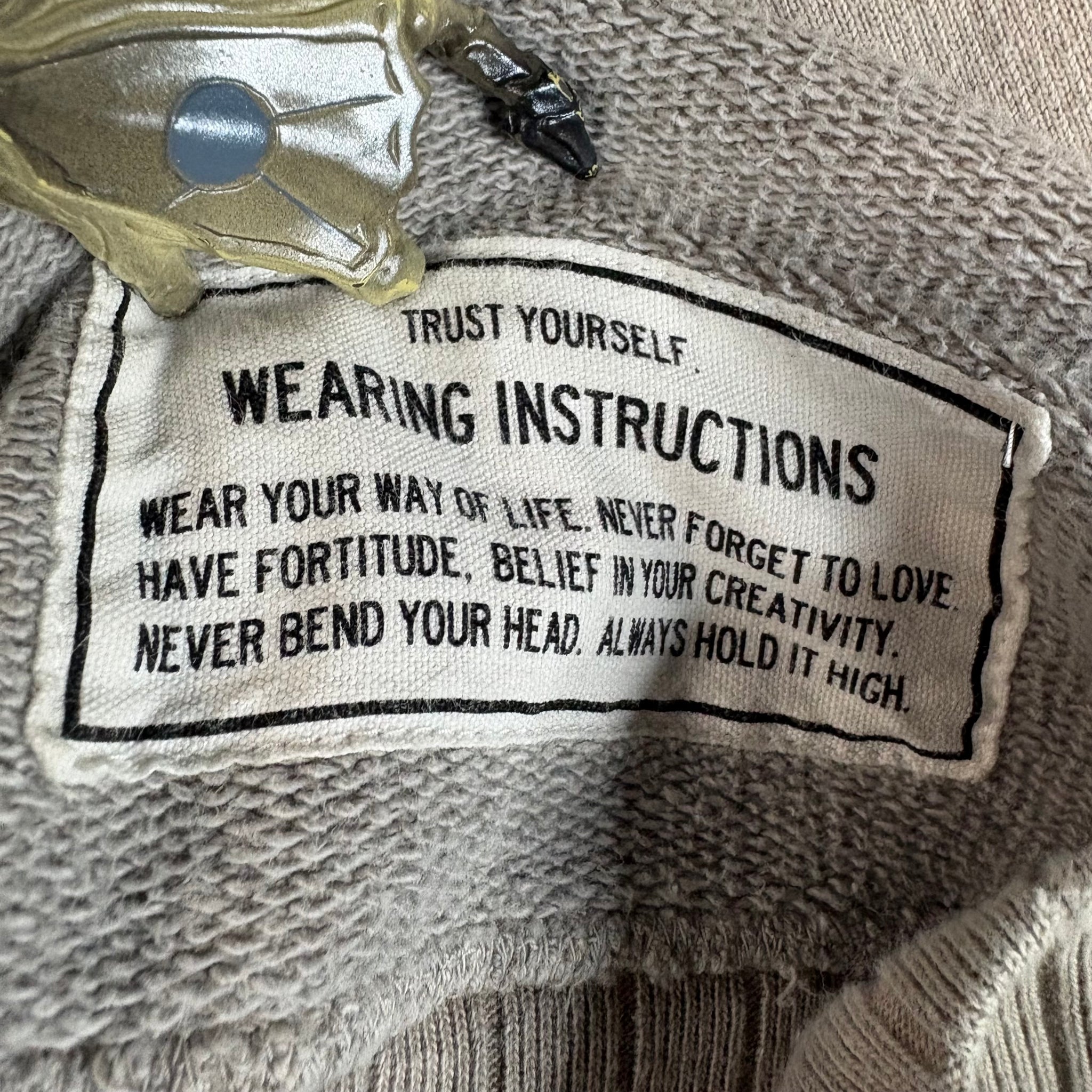 Edgy, fashion-forward, and unmistakably Maison Mihara Yasuhiro—this vintage-inspired distressed hoodie features unique graphic embellishments throughout, giving it a worn-in, artistic character. Crafted from soft, midweight cotton, it combines comfort with high-fashion streetwear appeal. The hoodie also includes a distinctive bottom tag with a QR code linking to the Maison Mihara Yasuhiro website, and a writable area where you can jot down your username and password, adding a playful and interactive detail. The deliberate distressing and bold graphics make this piece a standout statement hoodie.