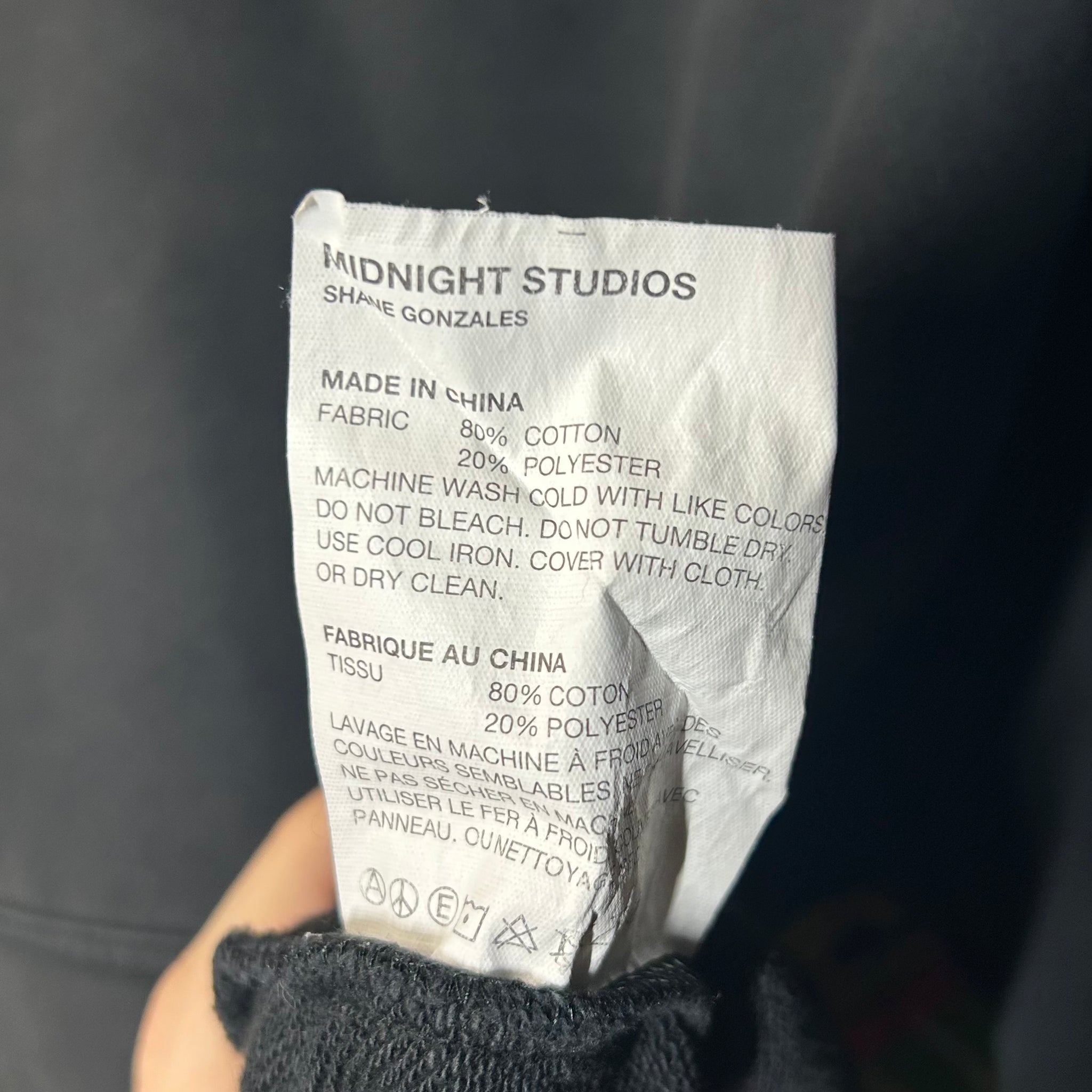 Elevate your streetwear game with the Midnight Studios ‘Call the Curtain’ Cargo Hoodie. Featuring a unique cargo pocket on the sleeve, this size 1/small hoodie adds a functional and stylish touch to any outfit. Stand out from the crowd and make a statement with this must-have piece.
