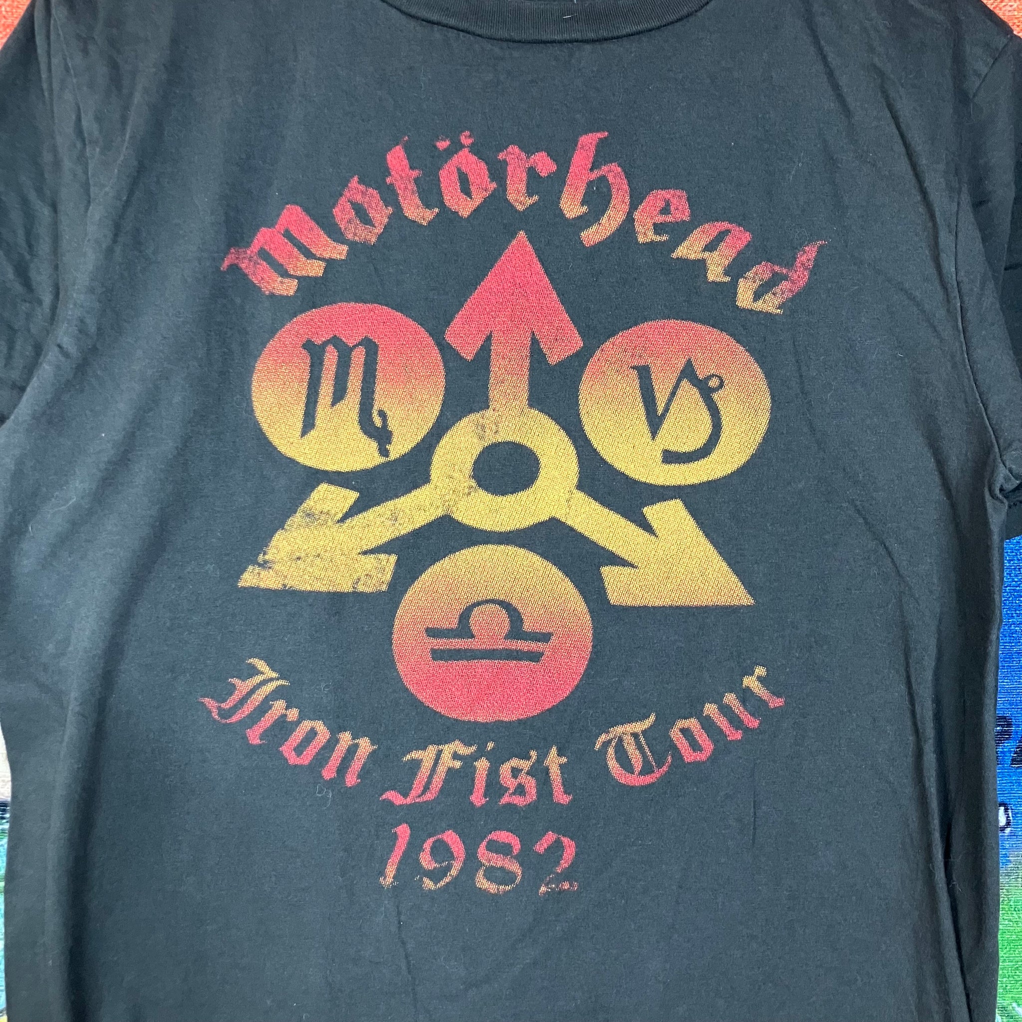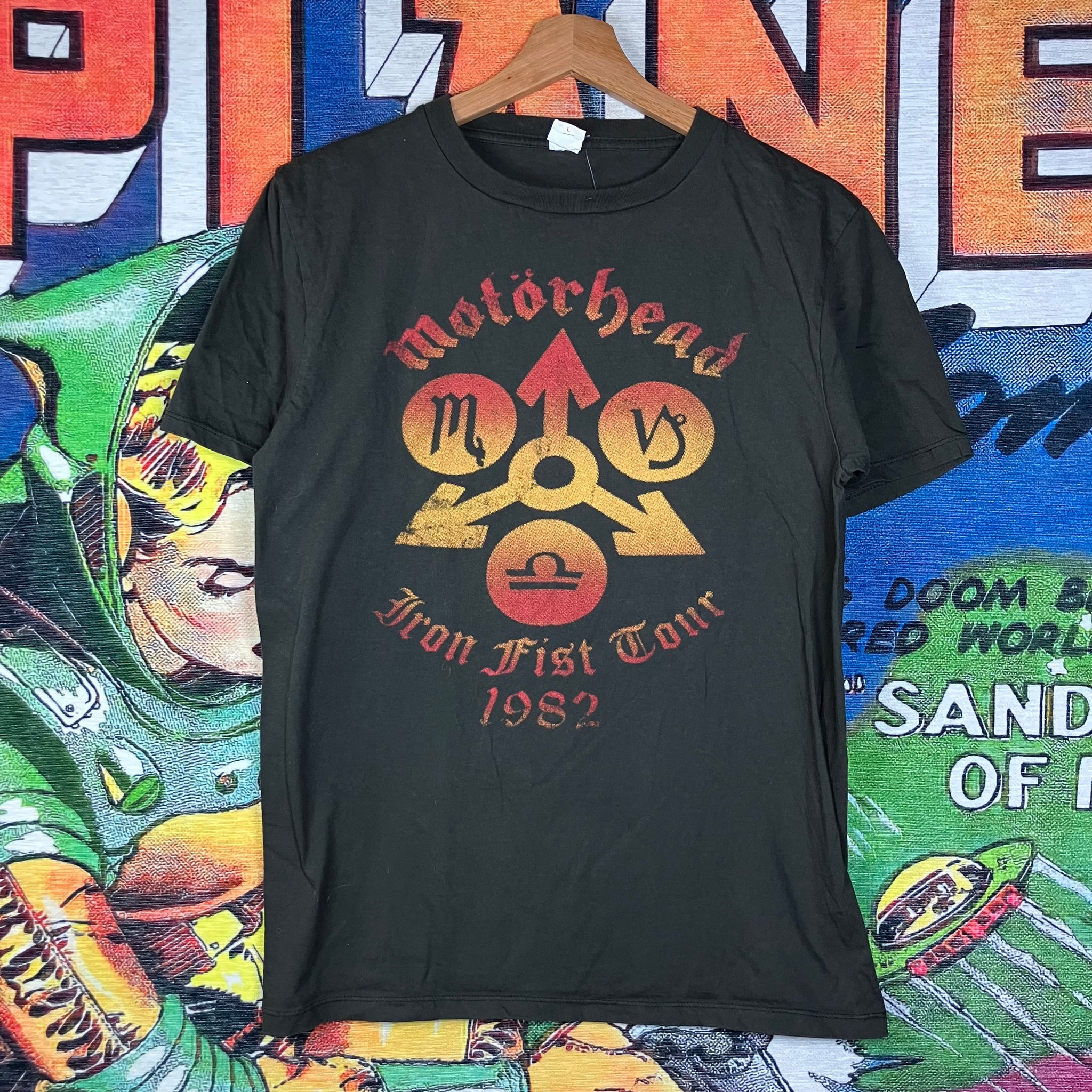 Step into the metal world with this iconic Motörhead Iron Fist Tour tee in size L. Made for true fans, this t-shirt features the legendary iron fist design that will have you rocking out in style. Show your passion for the band with this must-have addition to your wardrobe.