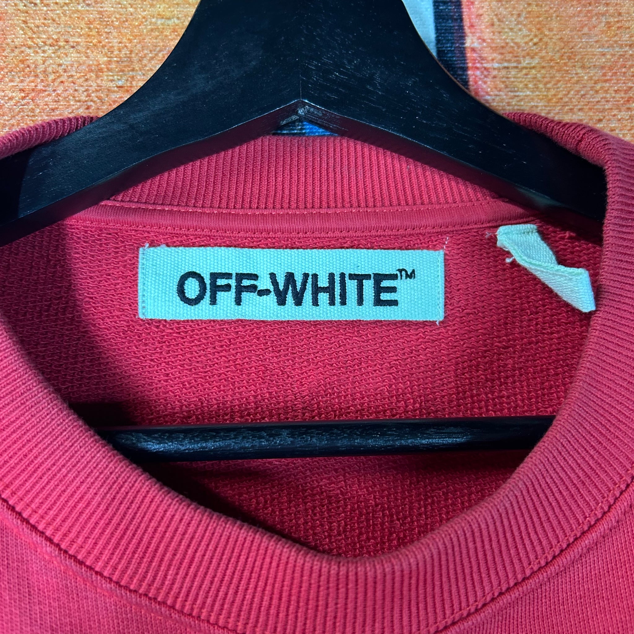 Signature Off-White crewneck sweatshirt featuring the iconic diagonal brushstroke design on the sleeves and back. Heavyweight cotton with a relaxed fit and bold visual identity—perfect for streetwear enthusiasts and fans of Virgil Abloh’s legacy.