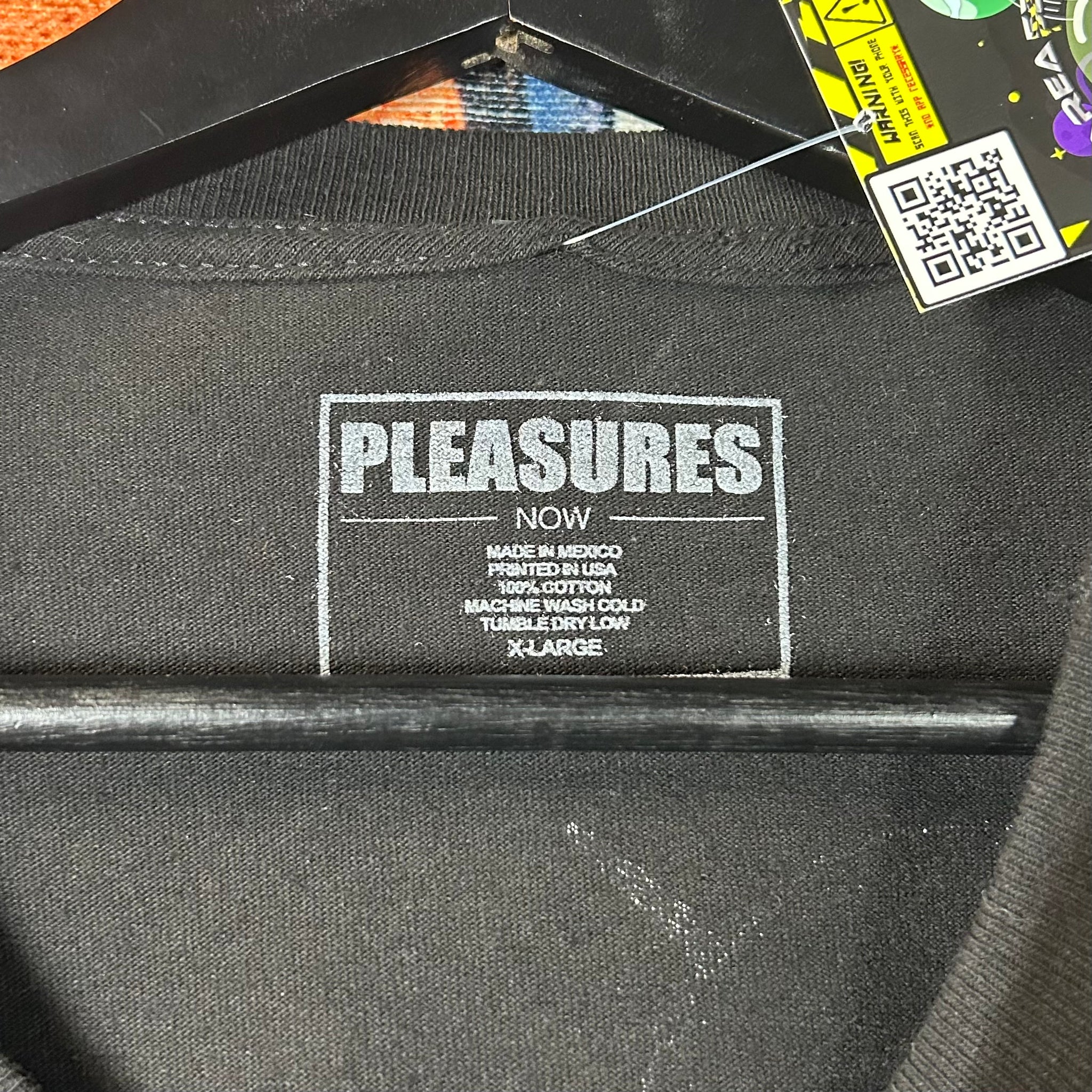 Experience the ultimate fusion of edgy streetwear and iconic anime with our Pleasures Anime Tee! Featuring a bold tribal print of your favorite anime girl, this shirt is sure to make a statement and turn heads. Available in size XL for the perfect fit.