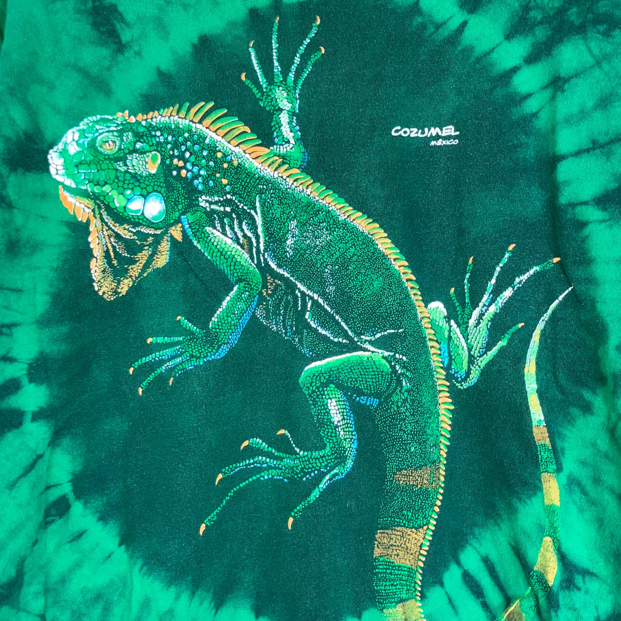Experience the vibrant colors and unique design of our Y2K Cozumel Iguana Tie Dye Tee! Perfect for any Cozumel lover or anyone who enjoys unique tees, this shirt features a stylish iguana design that captures the essence of the destination. Add a touch of tropical flair to your wardrobe and stand out in a crowd with this one-of-a-kind tee. Available in size L.