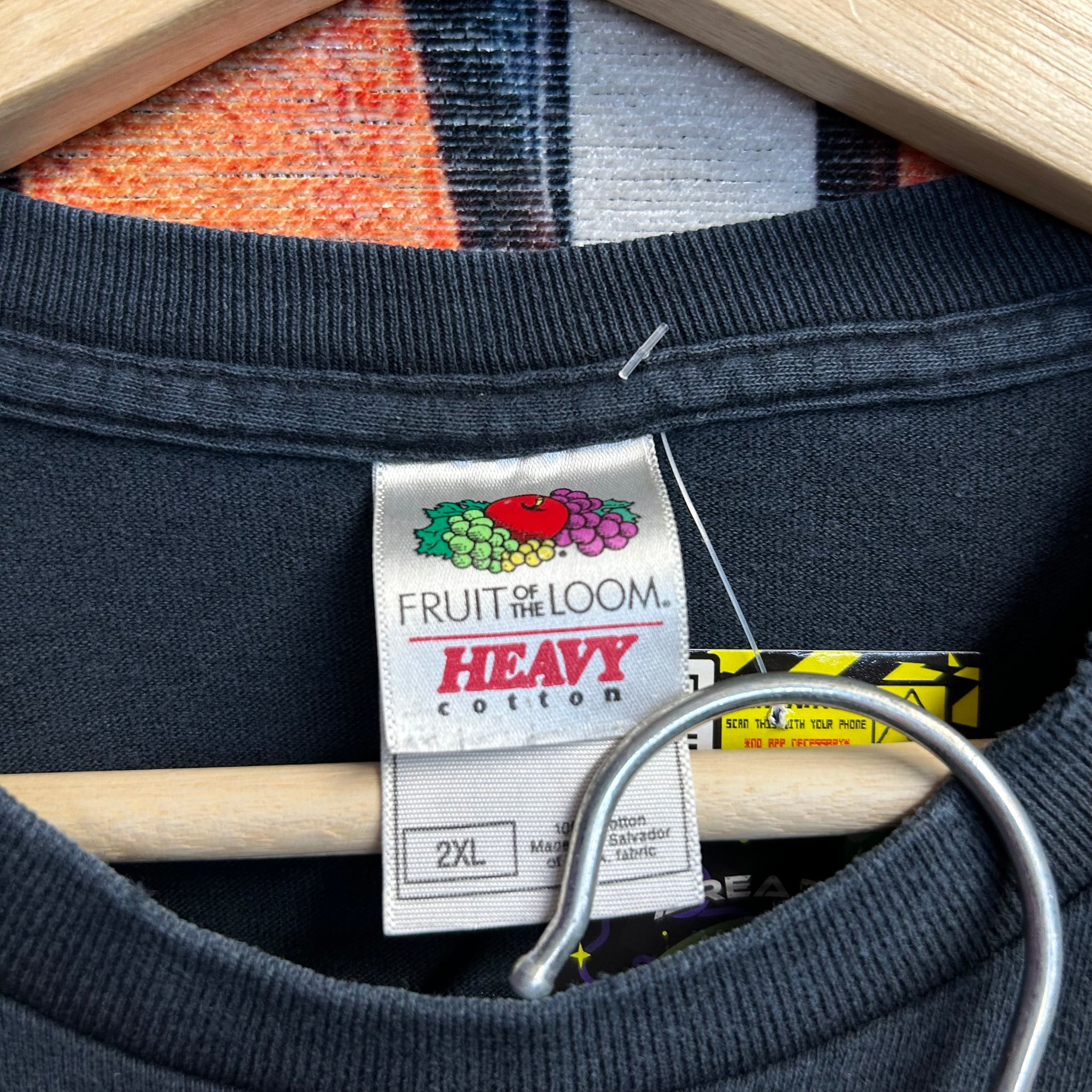 this tee is from the early 200’s and the tee has a nice fade as well as a nice color to it. perfect for anyone trying for capture that random y2k graphic  tee aesthetic!