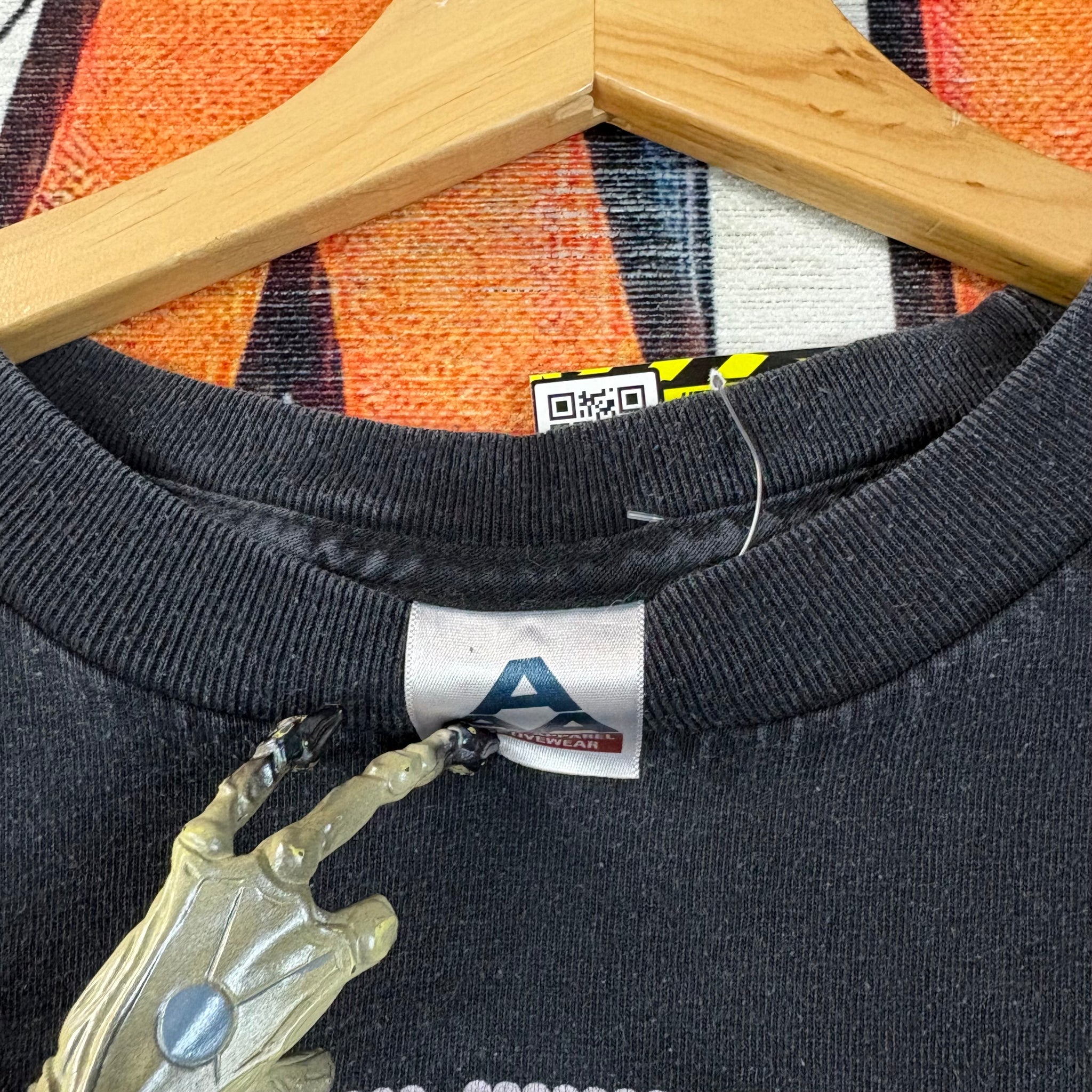 This rare, black Jeffrey Osborne T-shirt instantly captures the smooth R&B vibe with a vibrant image of the artist mid-performance, accented by the question, "Can You Woo-Woo-Woo?" It's a fantastic vintage piece for fans of classic soul and funk, embodying the energy of the legendary singer.