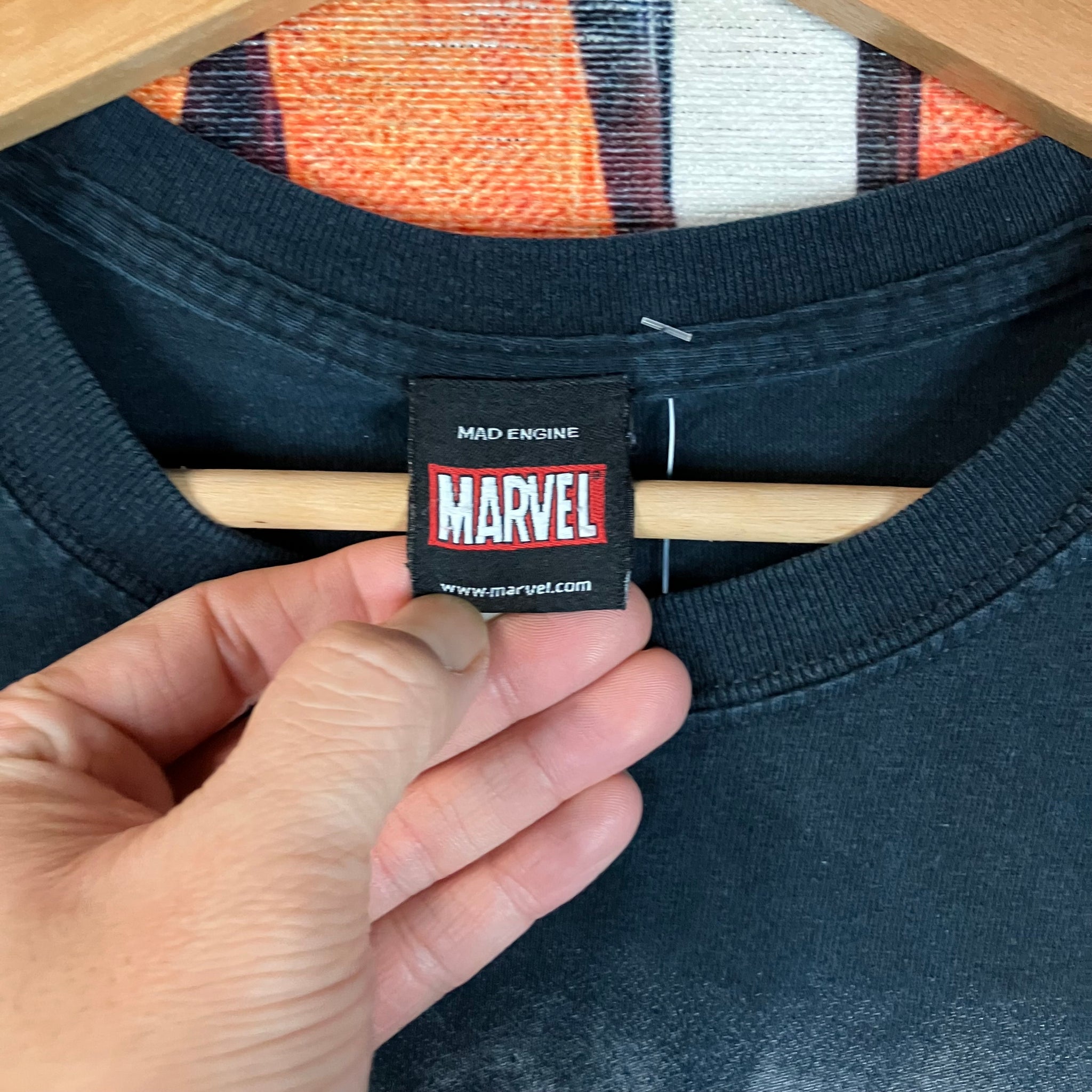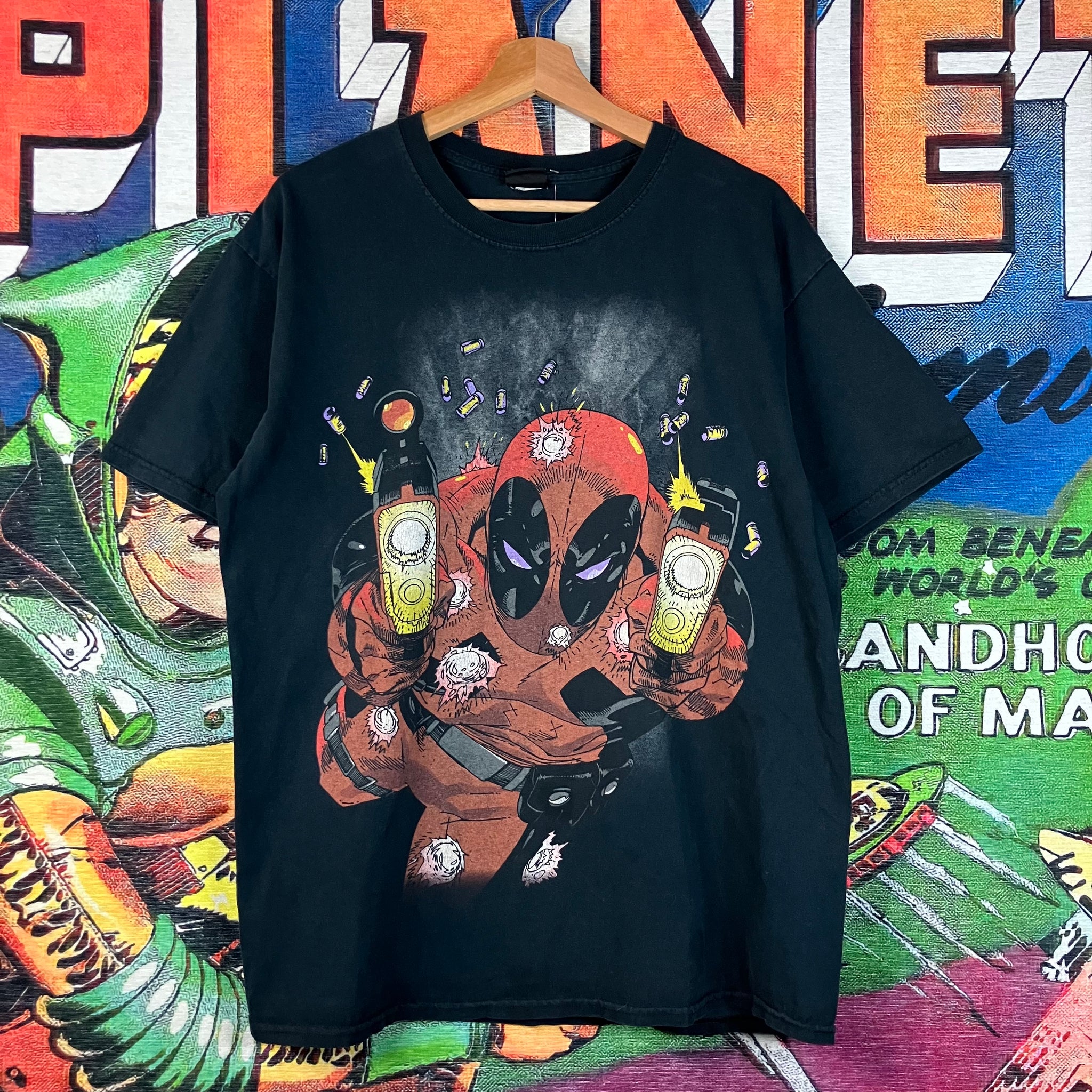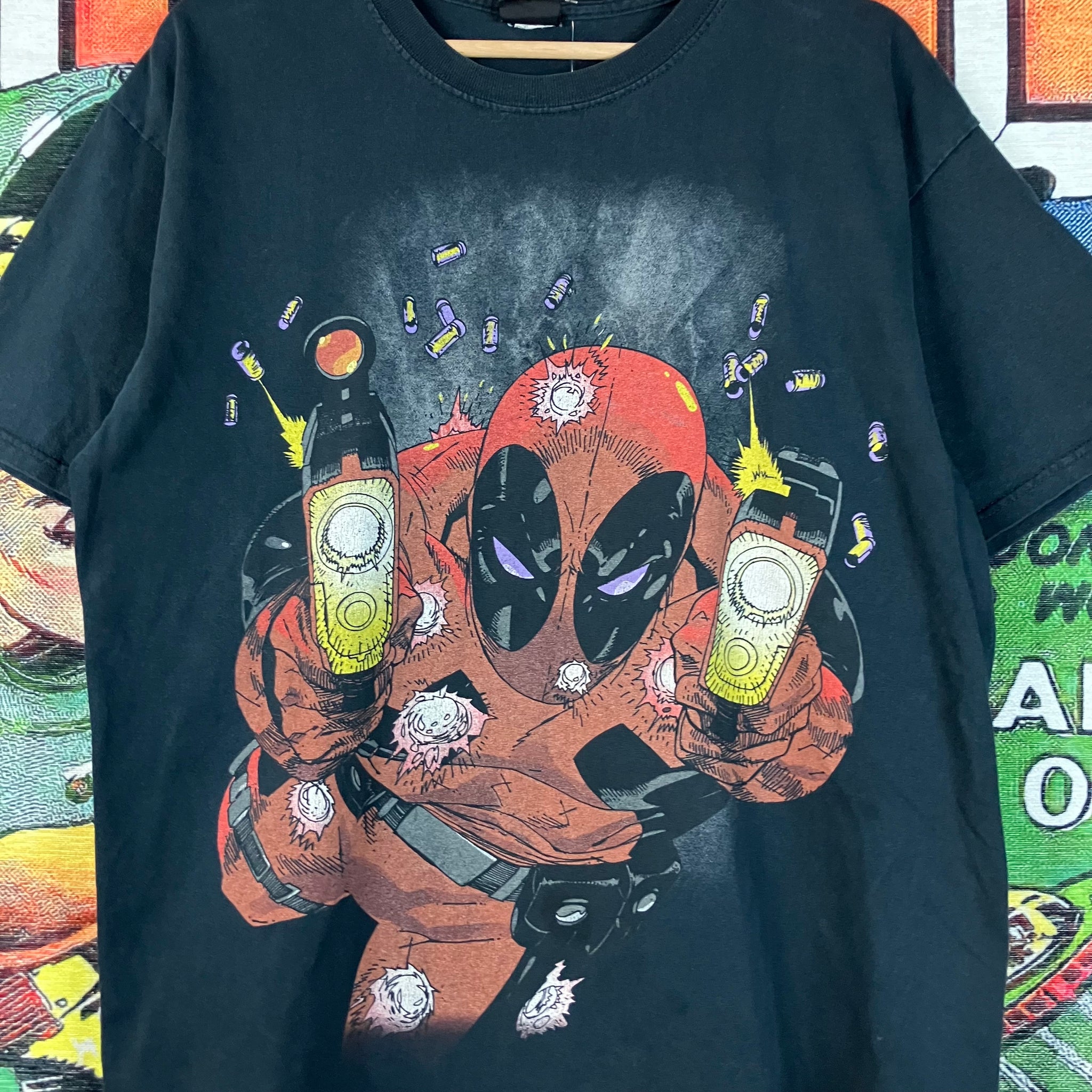 Join forces with the infamous Deadpool in this bold and edgy Y2K Mad Engine graphic tee! Show off your love for the Merc with a Mouth with a larger-than-life print on a comfortable size L shirt. Perfect for any Deadpool fan looking to make a statement. Unleash your inner anti-hero now!
