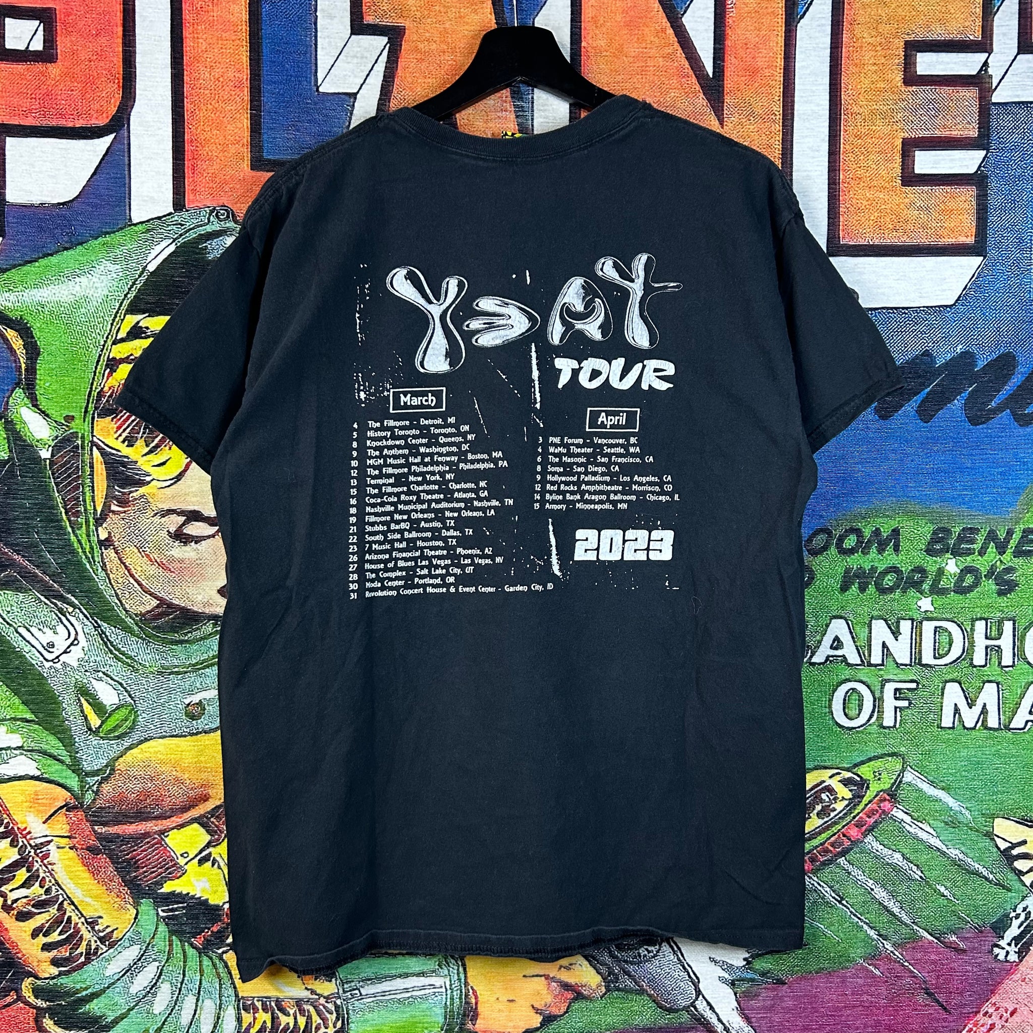 Official 2023 Yeat tour tee featuring bold graphics on the front and back. Made from soft, breathable cotton with a classic fit, perfect for fans and collectors of tour merchandise.